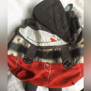 Adorable animal-themed backpack. Features red and gray colors. Perfect for kids. Smoke Free household