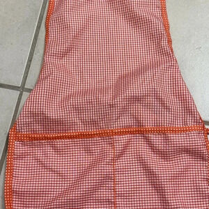 Slightly used excellent condition. Smoke free home. Handmade kids orange apron size 4-5. No issues. Pockets on the front.