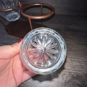 Vintage Kig Indonesia Starburst Glass with Bronze Iron Condiment Stand Carousel