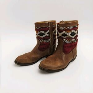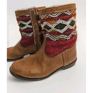 Vintage Kilim Leather Boots Handmade Moroccan Tapestry Size 8 Turk Festival