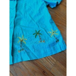 Vintage Kim Rogers Linen Blend Embroidered Palm Tree Beach Shirt Size L