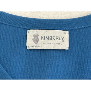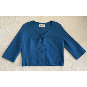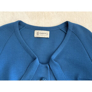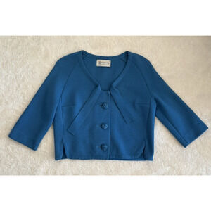 Vintage Kimberly Blue 100% Wool SM Knit Crop Jacket 3/4 Sleeve Buttons 60s Retro