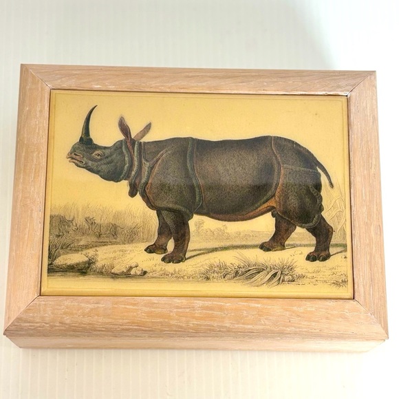 Vintage Kimberly Enterprises Art Tile Rhinoceros Jewelry Music Box