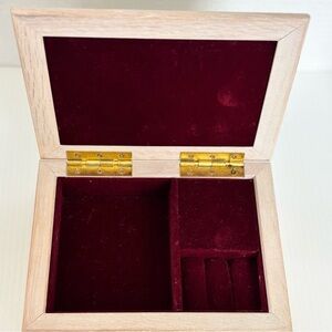 Vintage Kimberly Enterprises Rhinoceros musical jewelry box that plays the song “You Light Up My Life”. Top is a ceramic tile with a rhinoceros, laminate finish and assembled by hand. Inside is maroon velvet with ring area and two other compartment areas for other jewelry pieces. Tiny bit of wear on the corner of wood as shown in photos, otherwise in good vintage condition. Measures L 7.5”, W 5.5” and H 2”.