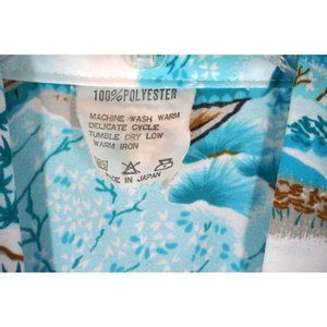 Vintage Kimono Bathrobe House Coat Swim Suit Cover Up Lounging Wear Beautiful Blues Pagoda Mt. Fiji Brand: No brand on tag Size on tag: No size on tag but I wear an XL to 1X in women's and I can wear this. I wouldn't go larger than that for sure and smaller would probably be best. (please refer to measurements as all are different) Fabric: 100% Polyester Condition: Great overall. There is a small section of the tie that has come unstitched on the seam. Easy repair that I simply don't have time for. There are a couple of VERY small snags that look more like from rubbing. Other: Made in Japan. Has sash or belt to tie around the waist. One large pocket on the hip front. Short; comes to the top of my thighs. All garments laid flat to measure and not stretched unless noted: Shoulders: 24" seam to seam Underarms: 25" across the back Sleeves: 12" from the shoulder seam down Total Length: 34" from the bottom of the collar straight down the center of the back Tie: 62 5/8" long