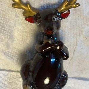 Vintage Kimple Ceramic Painted Reindeer in good preowned condition. Made in Japan. No chips cracks or scratches. Colors and paint are sharp. One eye is different than the other - Not sure why. Approx 4”.