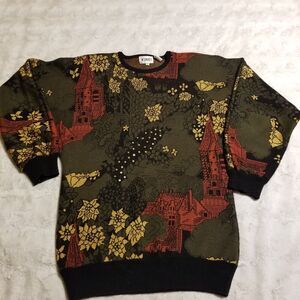 Vintage Kinei Sweater Womens Small Knit Green Gold Embellished Beaded Fall
