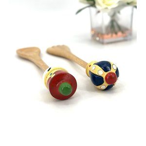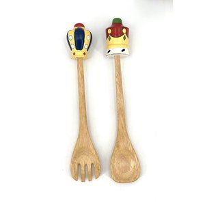 Vintage Wooden King & Queen Wooden Fork and Spoon Salad Serving Set. Condition Is Vintage Pre-Owned (There Are Some Scuffs In The Paint) 12" Length From Clean Smoke Free Environment. Shipped To You With USPS Priority Mail. Thanks For Visiting Our Store!