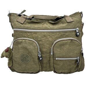 Vintage Y2K Kipling Adomma Handbag in Olive Green Crinkle Nylon