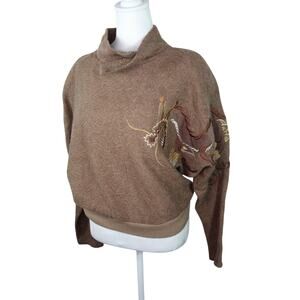 Vintage Kirin Creations Batwing Sweater Embroidered Chinese Dragon Rhinestone M