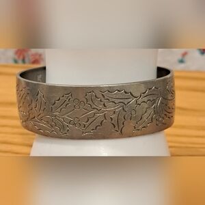 Vintage Kirk Steiff Pewter Holy Berry Etch Cuff Bangle Bracelet Costume Jewelry