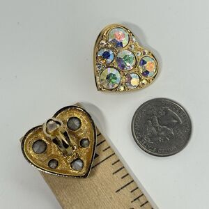 Vintage Kirks Folly Hearts Aurora Borealis AB Crystal Goldtone Clip On Earrings