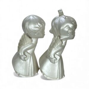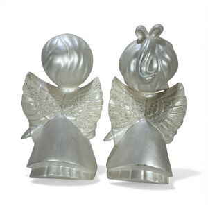 Kissing angels have a shimmer pearl finish really giving an elegant appeal. Perfect for any holiday. Stands just above 7 tall no flaws found.