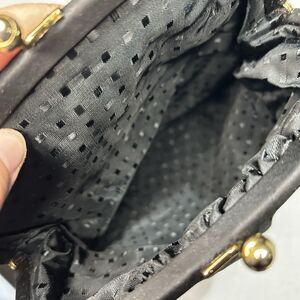 Vintage Kisslock Evening Bag in Black Fabric with Delicate Chain Hand Strap