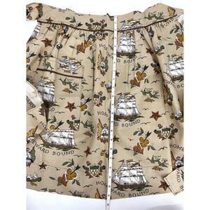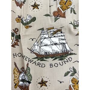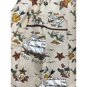 Vintage Kitchen Apron Handmade Homeward Bound Ship Motif Tan