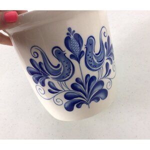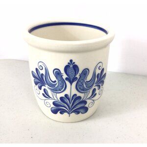 Vintage Kitchen Crock Stonewear Cobalt Blue Lovebirds.