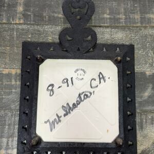 Perfect for protecting your countertops from hot dishes or as a decorative accent, this trivet combines functionality with retro style. Don't miss the chance to own a unique piece of kitchenalia that captures the wit and design of a bygone era. It is in good condition for its age.