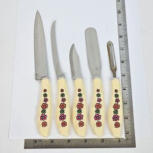 Vintage Kitchen Knives Peeler Happy Helper Imperial Flower Power Handle Set