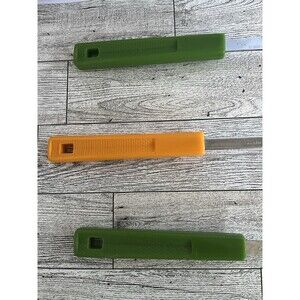 Up for sale are these three Vintage Kitchen Utensil Androck Spoon Ladle Green Orange Plastic Handles.