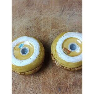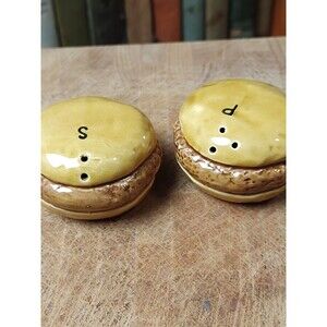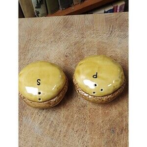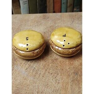 Add some retro charm to your kitchen with this vintage Kitchy Hamburger Salt and Pepper Shaker Set. The ceramic set includes a pepper shaker and a salt shaker, both shaped like cute hamburgers. Perfect for collectors or anyone looking to add some style to their kitchen, these shakers are a great addition to any dining table.