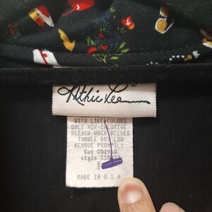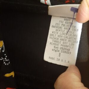 Vintage Kithie Lee Black Novelty Collared Button Down Shirt Short Sleeves Size 8