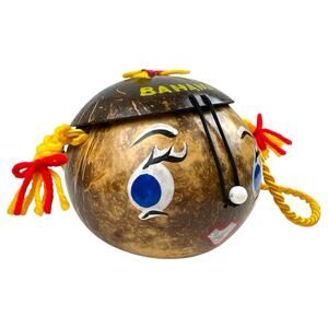 1960's Vintage Kitschy Bahamas Coconut Purse Bank Hand-Painted Face Folk Art Souvenir