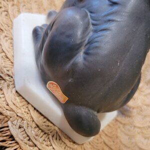 Oh hi kitschy retro puppy...are you silently judging or serving pleading puppy dog eyes? Either way, little guy is super cute. Measures approximately 5" tall x 5" wide. In excellent condition, no cracks or repairs. The rubber stopper is long gone, but I do not advise using this as a coin bank as it could damage the ceramic.