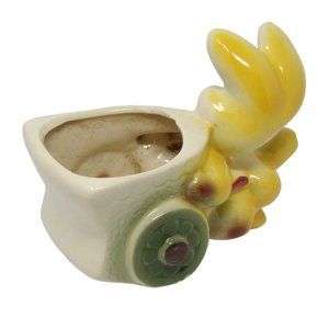 Vintage Kitschy Yellow Bunny Rabbit Pushing Cart Planter 5" H x 6 3/4" L x 3" D