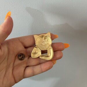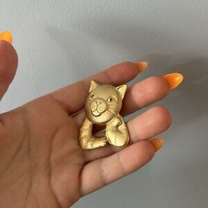 Vintage Kitty Cat 80s 70s Gold Tone Pin Button Sweet Green Eyes Whiskers