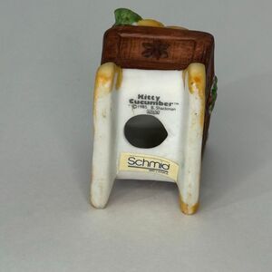 Kitty Cucumber in Christmas Sleigh ornament is part of a discontinued collection designed by Priscilla Hillman