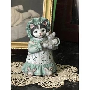 Vintage Kitty Cucumber Ellie Ready for Bed 1987 Schmid Black and White Kitty