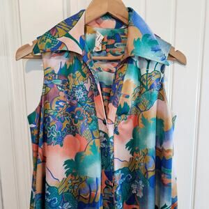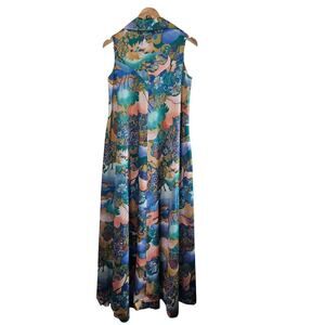 Vintage Kiyomi Hawaii 70s Dress Womens Size 10 Maxi Disco Tropical Psychedelic