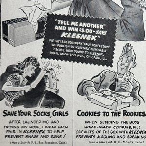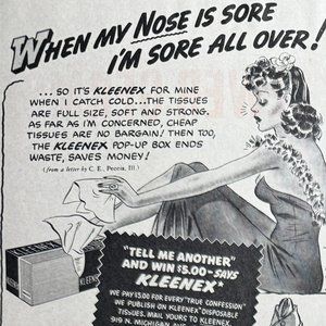 Vintage Kleenex Ad (1942): Uses for Kleenex - Comics, Cartoons, Drawings, B&W