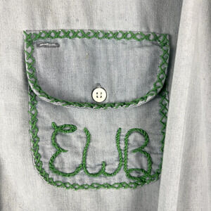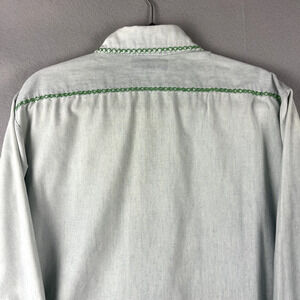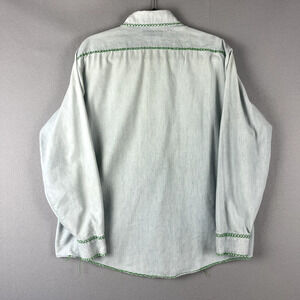 Vintage Kmart Shirt Mens Large Blue Button Up Embroidery Long Sleeve Upcycled
