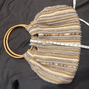 Vintage Knapp Sacs Of California 1970’s Knit Round Wood Handle HandBag