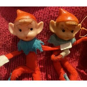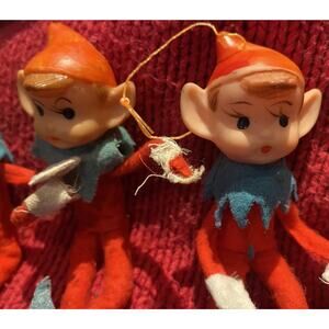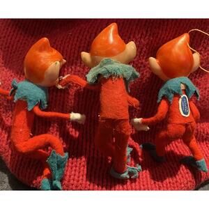 Vintage Knee Hugger Elf Japan Lot Of 3 Christmas Ornaments
