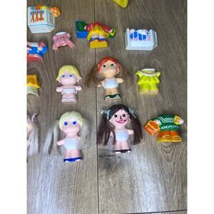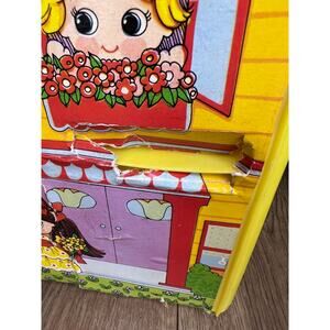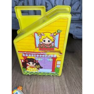 Vintage Knickerbocker Dolly Pops dolls w/carrying case. See photos for wear to the outside of carrying case - the paper is damaged in a few places. Due to age some of the pieces may have fading. Sold as is.