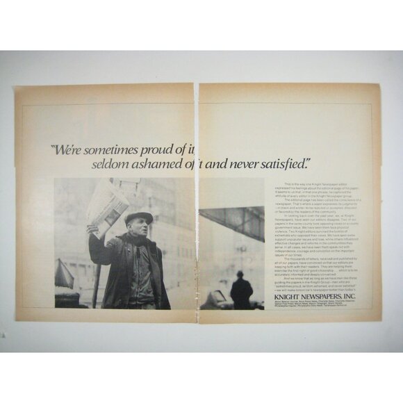 Vintage Knight Newspapers Print Ad Newsboy Holding Papers 2 Page READ