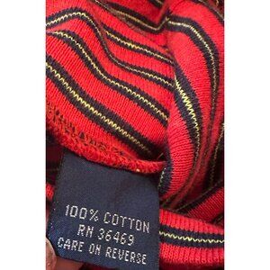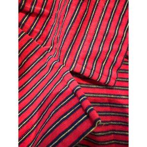 Color/Pattern: Red with navy and cream horizontal stripes