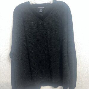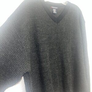 Vintage Knightsbridge Mens Sweater Dark Gray V Neck Large Wool Blend FISHERMAN