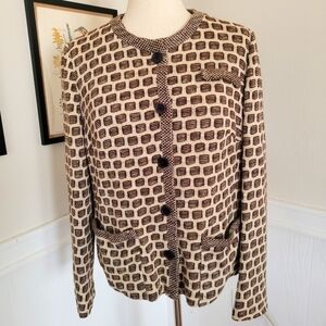 Vintage Knit Brown Cream Button Down Sweater Cardigan Medium