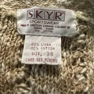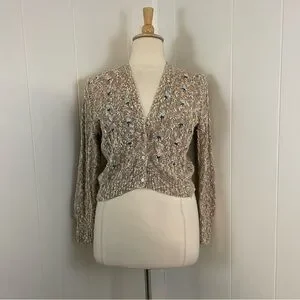 Vintage Knit Cardigan Sweater Women’s XL Floral V-Neck Long Sleeve Linen Cotton