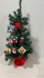 Some ornaments have additional detail: gold beads on the christmas tree, googley eyes on the reindeer, broom with snowman, pearl and bow on the wreath.