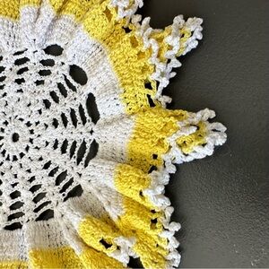 Vintage Knit Doily White Yellow Flowers Floral Spring Cottagecore Doily Doilie