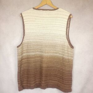 Vintage Knit Embroidered Tan Brown Ombre Floral Buttondown Vest size 14/16 XXL