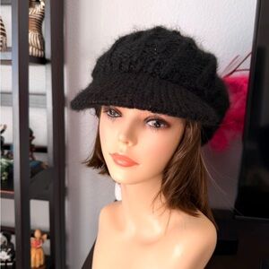 Vintage Knit Fuzzy Black Wool Beret