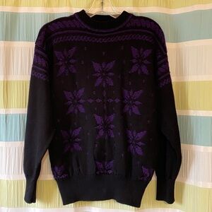 Vintage Knit Snowflake Sweater Black & Purple Med