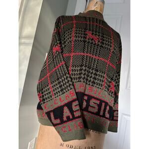 Vintage Knit Sweater green CLASSIC horse plaid Equestrian 80s