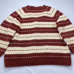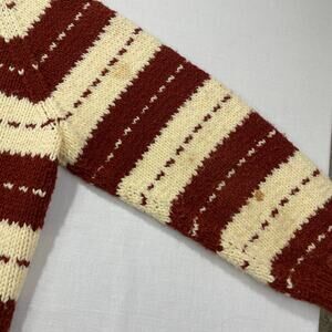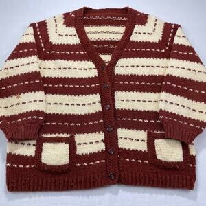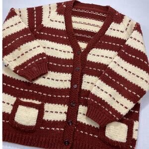 Vintage Knit V Neck Cardigan Stripped size L Brown White Button