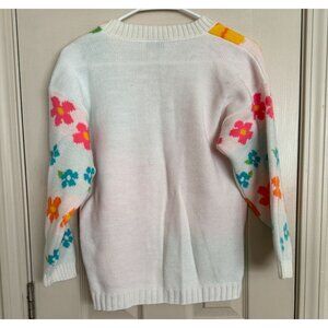 Vintage Knit Waves Acrylic White Floral Button Down Cardigan Woman's Size Small C1